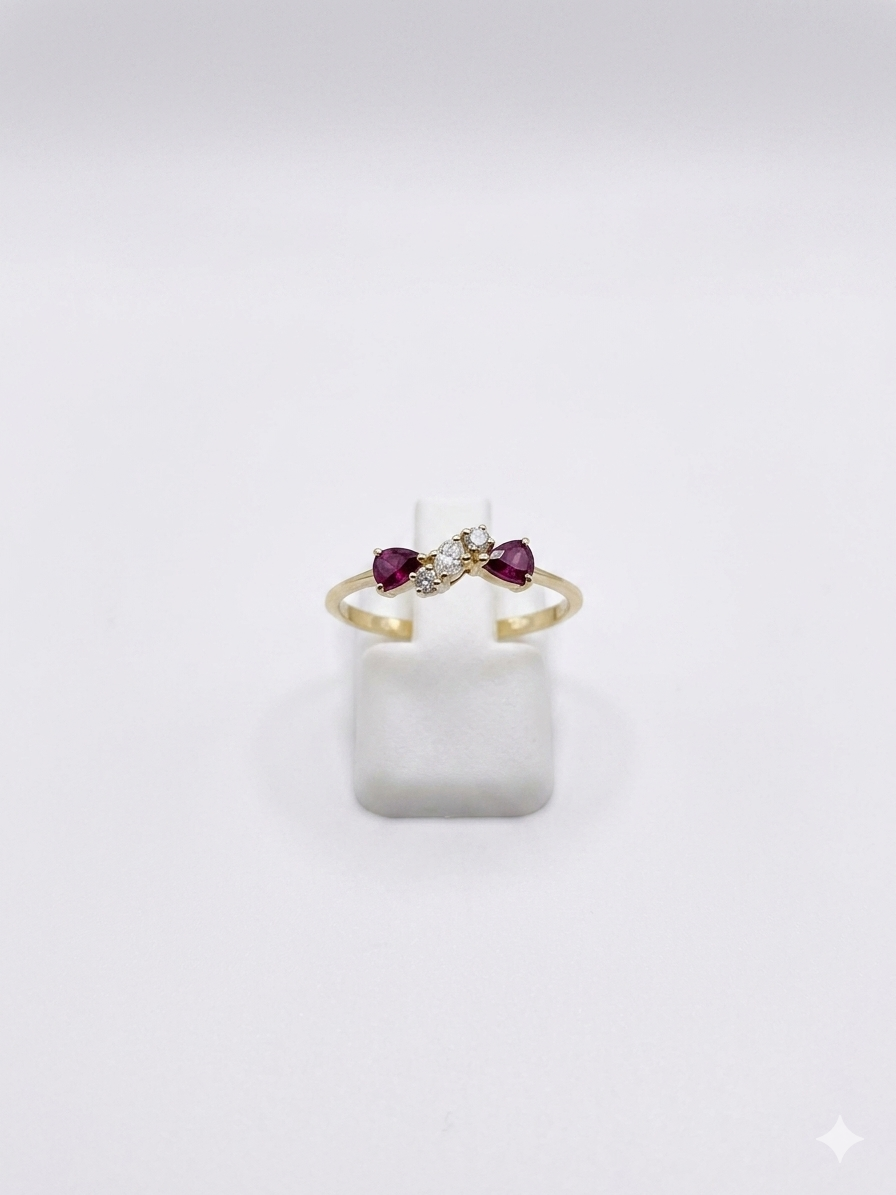 Bague or jaune, diamant et rubis